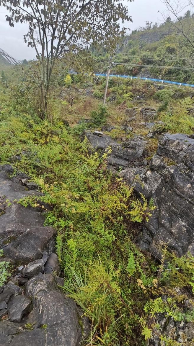 被害人被埋尸的石缝,2023年7月26日,嫌犯指认现场后,警方挖开埋尸封土,找到遗体后,家属跪在现场痛哭