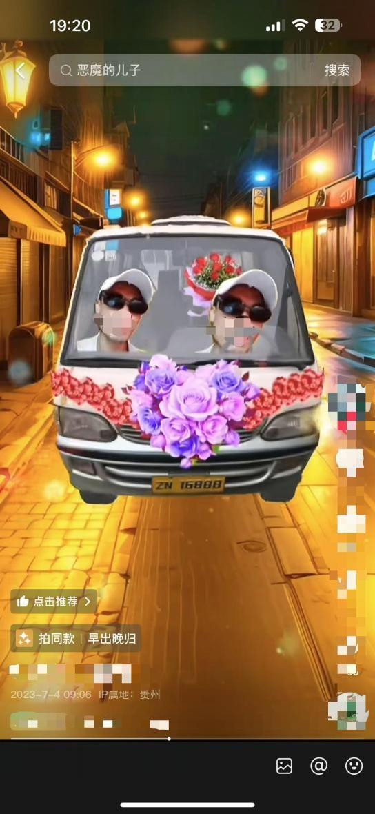 大河报《看见》记者注意到,嫌犯在作案后的半个月内,在其短视频社交账号累计发布7条短视频,多为唱歌内容。其中,案发次日,嫌犯发布的一条合成画面短视频,主体是一辆扎着花束的白色面包车,车内为嫌犯戴着白色帽子和墨镜的头像,背景是夜晚的街道,车辆从远处驶来。视频配乐歌词“你离开以后……”